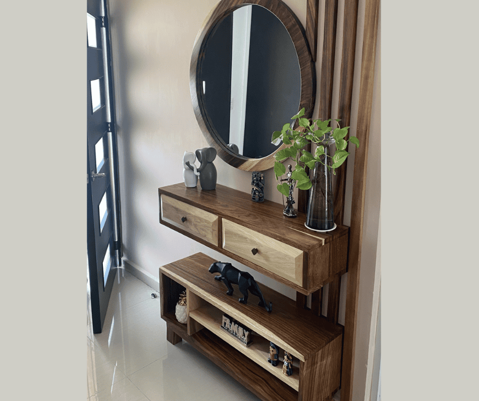 Materiales: Parota, perfil cal 14 de 4″ y resina epoxica.