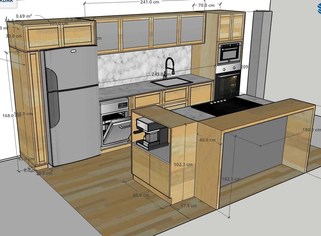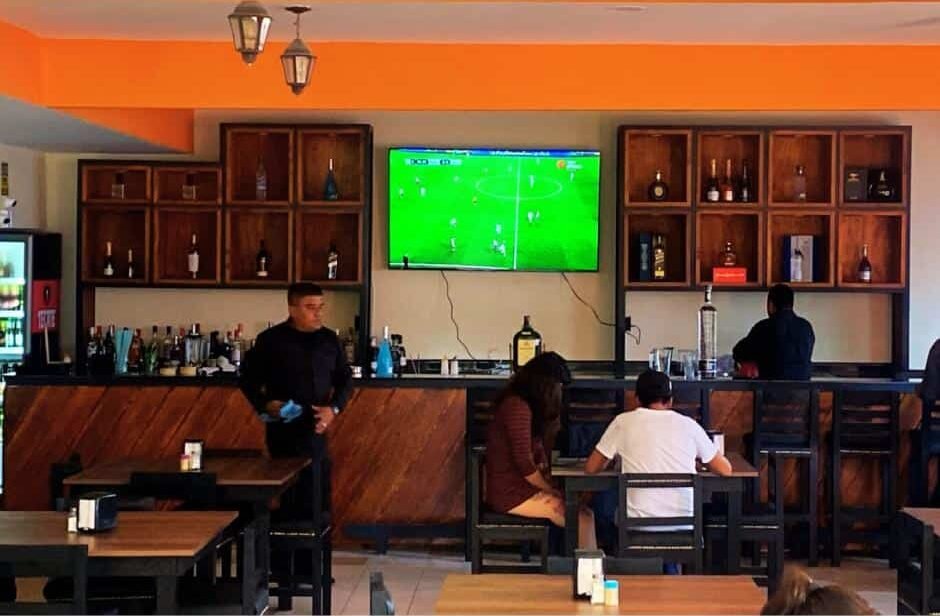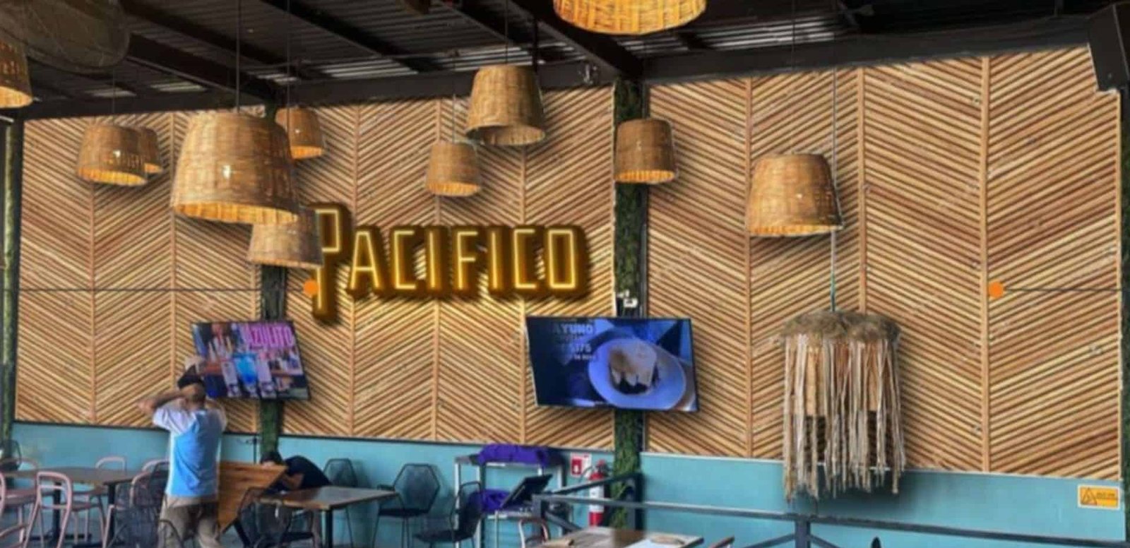 Asientos corridos azul + mesa rectangular